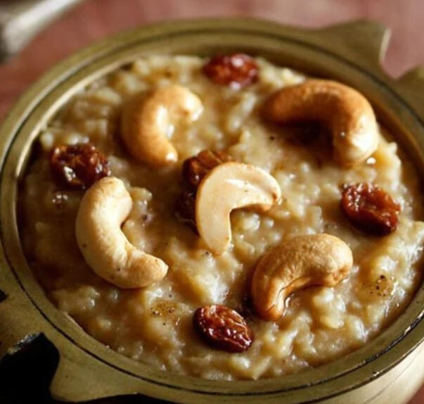 Every day we get to drink good tea is a celebration! This is a traditional celebratory dessert that translates to "boil over." It gets this name from the process of making it - rice is cooked in milk with added cardamom, golden raisins, cashews jaggery, ghee and nutmeg until the milk boils enough to overflow! A bit of a mess, but delicious nonetheless.